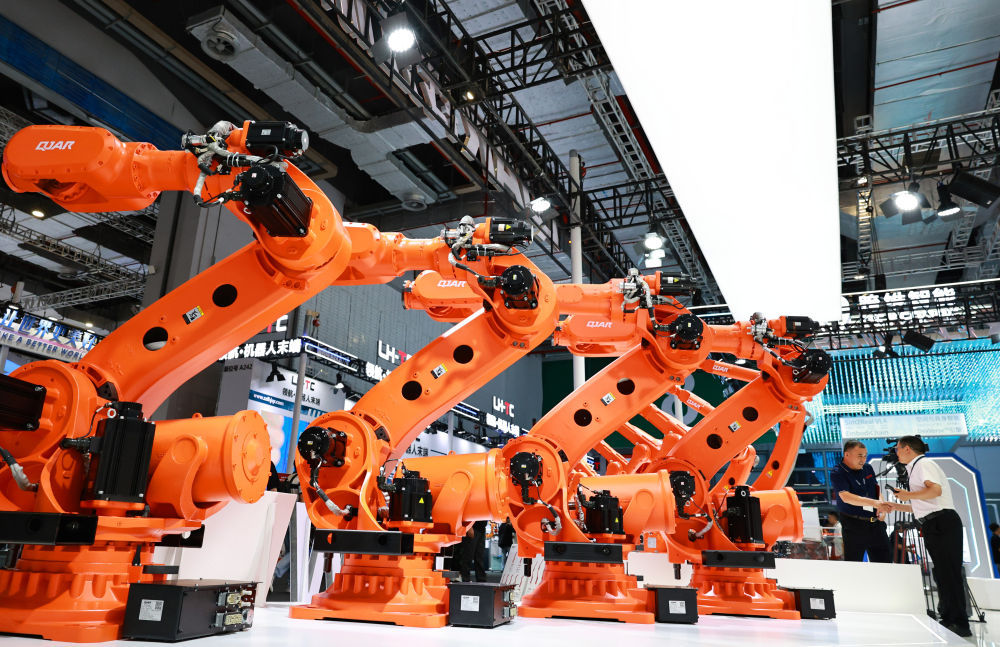 这是第25届中国国际工业博览会现场展示的一组大型工业机器人产品。(2025年9月23日摄)新华社记者 方喆 摄