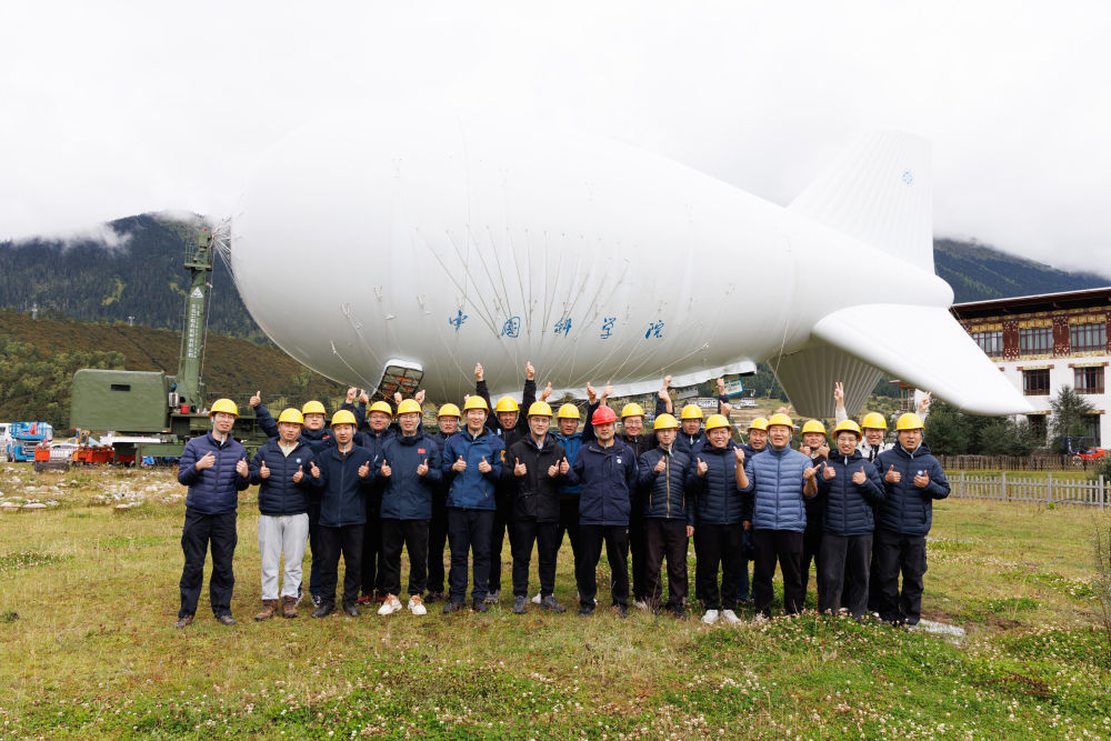 “极目一号”浮空艇试验队部分成员合影(2025年9月18日摄)。新华社记者 金立旺 摄