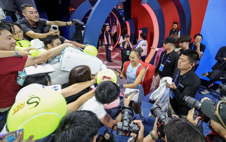 今年中网,中国“金花”郑钦文的伤愈回归备受期待。9月27日,郑钦文迎来复出后的首场比赛,现场上座率超过九成,当日国家网球中心入园人数超4.5万人次,创下中网赛事历史新高。虽然郑钦文在女单第三轮因伤退赛,但中国球员近年来在国际赛场的持续突破,已在中国掀起一股网球文化热潮。“十一”期间,中网上座率保持高位,吸引天南地北的球迷齐聚京城,共襄网球盛宴。