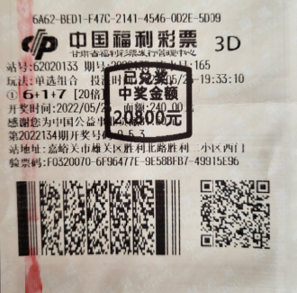 据悉,孙女士是一位老彩民,对3D游戏喜爱有。5月25日晚上,孙女士来到62020128号投注站,根据号码走势图、和值、跨度等综合分析后,选出心仪号码167,并进行15倍倍投。当晚发现自己中奖后,第二天并没有急着兑奖,而是来到62020128号投注站,又购买一张5组直选10倍倍投彩票,令她没有想到的是,这5组数字的其中一注又击中当晚开奖号码。兑奖时,孙女士说:“自己运气太好了,连续两期击中开奖号码,收获2.6万元奖金,真是太开心了!”